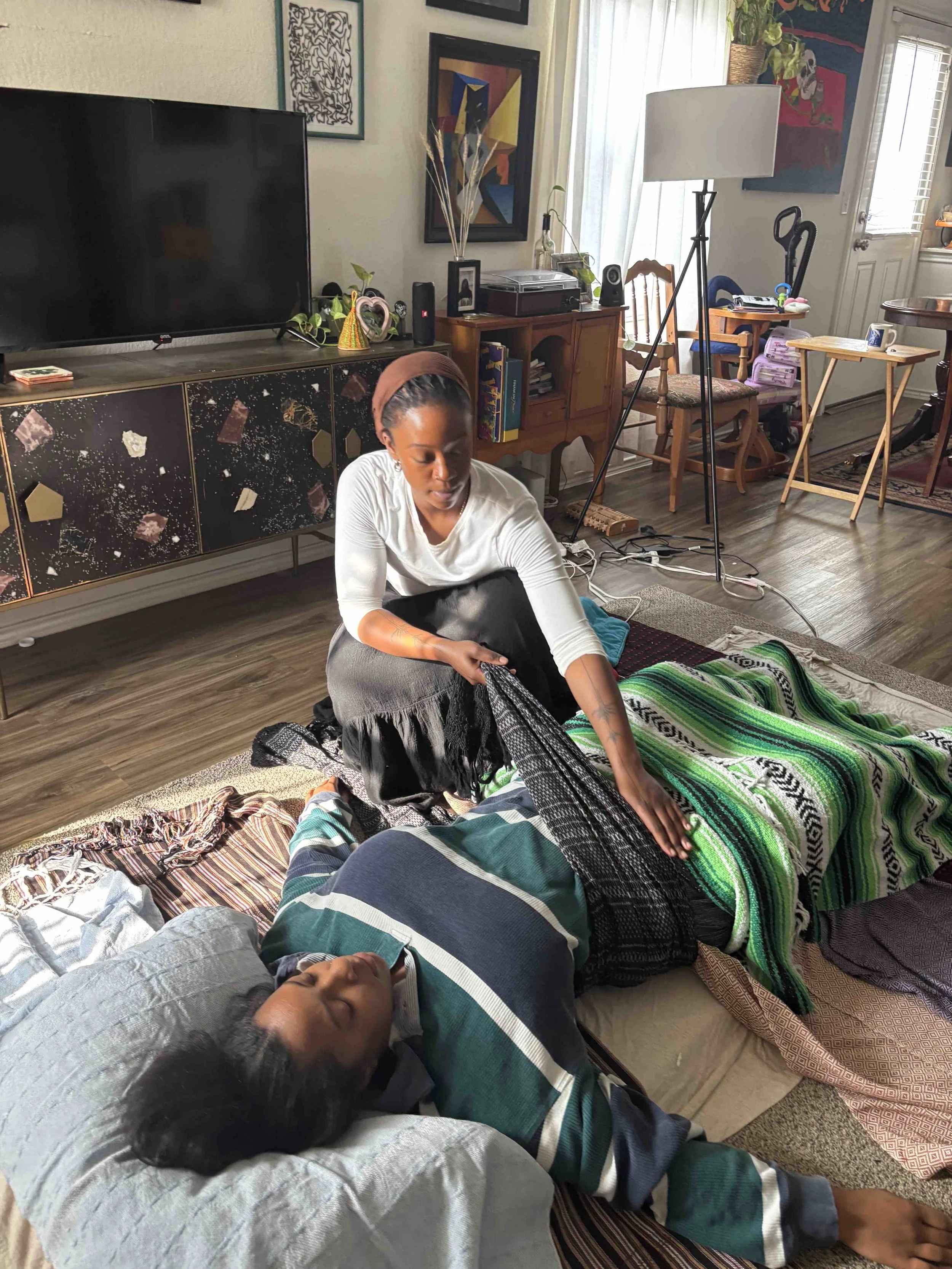Rebozo Manteada: sifting, rocking, and stretching of the body with traditional Mexican scarves